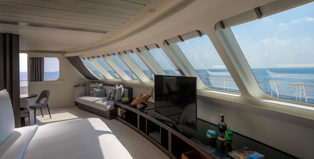 The indoor lounge is the perfect place to unwind, swapping stories with fellow passengers, reviewing the day’s underwater highlights captured by the resident videographer, or enjoying a book, magazine or board game from the Library along with all-day drinks and refreshments.