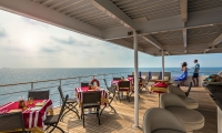 Indoor bar feature cosy sofas adjacent to a relaxing lounge area, while a second, outdoor bar on the sheltered, lower sundeck gives you a front-row seat to the breathtaking sunsets.