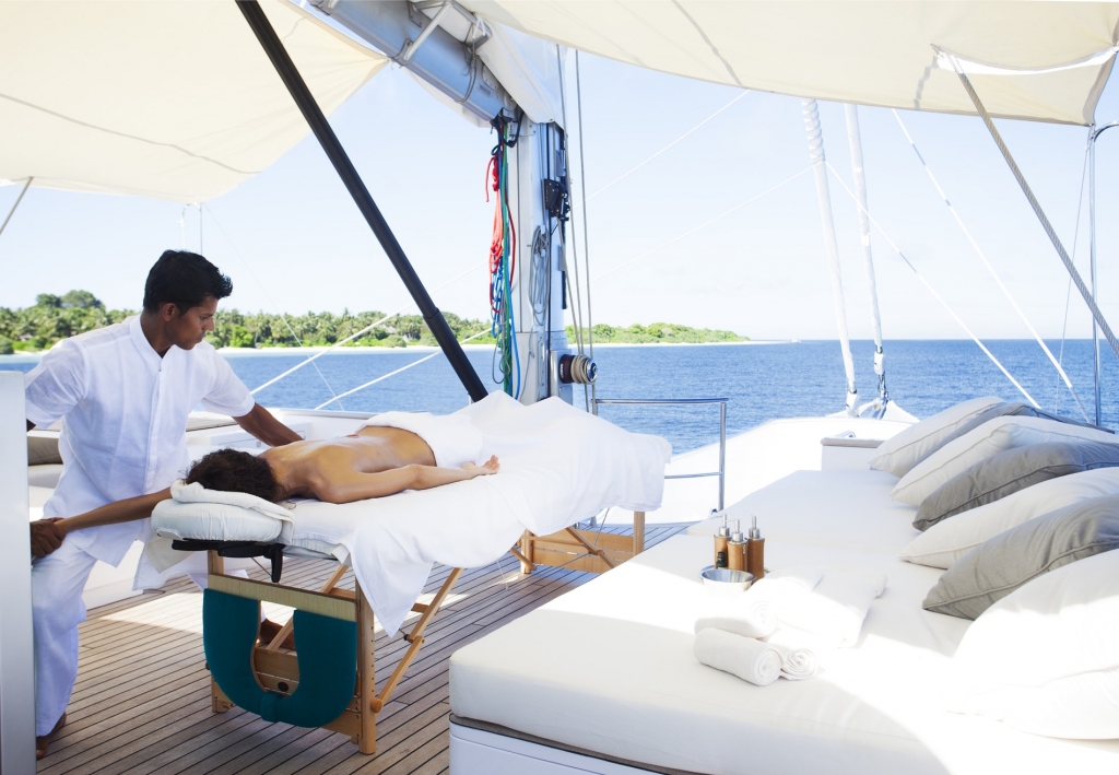 The onboard therapist offers a wide range of treatments and personalised wellness activities. Each holistic therapy presents an exhilarating sensory journey whilst at sea or on a secluded stretch of island. A private sunset massage on the sandbank, invigorating early morning Tai Chi or yoga on the deck; the possibilities are endless.