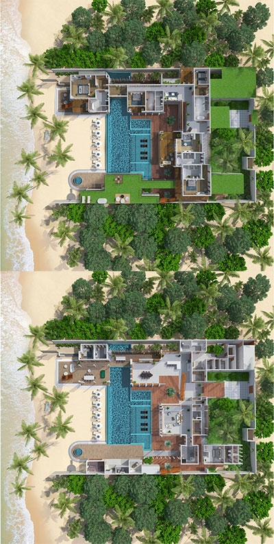 This Miami-stye paeon to contemporary architecture is the largest of the hyper-luxury Amilla Beach Villa Residences. It is perfect for multiple families and large groups of friends who seek palatial space for entertaining without compromising personal privacy. In keeping with its name, this residence is great in so many ways – outrageously super-sized living rooms, immense master bedrooms and supremely comfortable guest suites, kitchen and bar with every conceivable gadget and gizmo, two pools and sun terraces, and myriad extras including gym equipment, table tennis, pool table, and PlayStation 4.