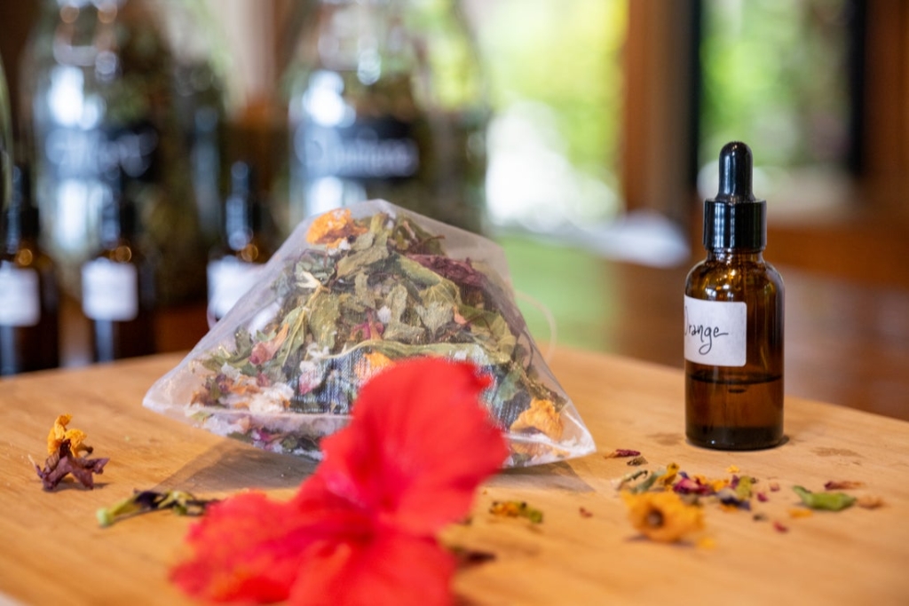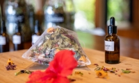 Join a workshop at Amilla's Alchemy Bar. Learn how to make bath and beauty products using fresh flowers, coconut oil and herbs grown on the island.