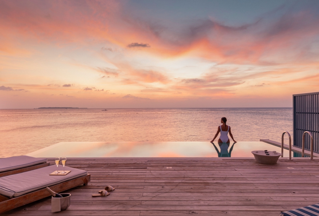 Enjoy endless lazy days in a lagoon hammock loading up a panorama of infinite blues. Ponder the slow life from your pool's floating bed. Then marvel at the fiery sunset painting the sky every evening.