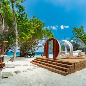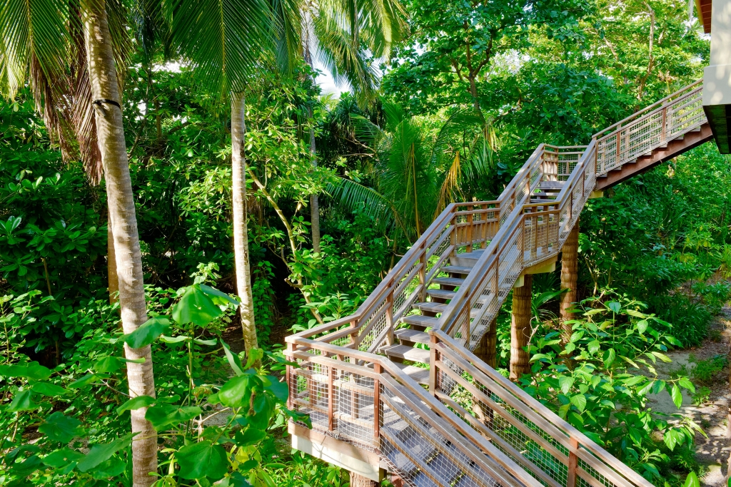 Live out your "Tarzan and Jane" fantasies in The Maldives' highest treehouse. Glide through a glass-walled pool suspended over the treetops. Soak up panoramic island views from the deck.