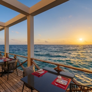 Tables poised on the over-water deck in prime position for you to watch fish dart by while you discover Japanese cuisine including an array of fresh sushi and sashimi.