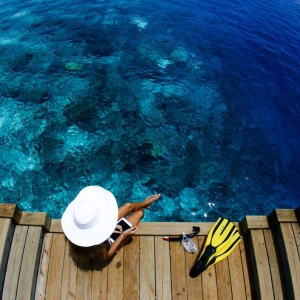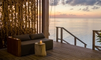 Gaze out across the reef from the comfort of your bed, or dangle your feet from your balcony and watch fish dart through the water below. Perfect for snorkelers, these Maldives water villas are suspended right over the kaleidoscope fish. Private access to slide into the embrace of the ocean.
