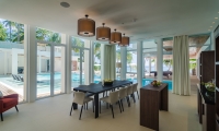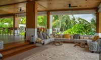 A home for castaway families – relaxed, intimate, generously sized. Ensconced in tropical greenery, a peaceful slice of paradise with a large freshwater pool that invites endless fun in the sun. By the pool, sun loungers recline in the dappled light. A table for six overlooks the shoreline to the water beyond, setting the scene for magical moments. Self-contained rooms with private amenities for parents, couples and kids to easily escape it all.