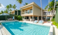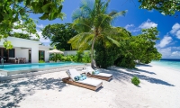 Get your dose of 'vitamin sea' in a huge beach haven on the glittering sand. Watch coconut palms sway while you recline on the shore next to your private pool. In seconds you're at the entrance to the house reef.