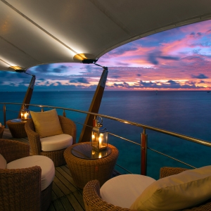 A kaleidoscope of colour greets you on the deck. Sea and sky meet on a horizon of bewitching beauty. While you relax in the shade of The Lighthouse's iconic canvas roof you can enjoy the best sunset views on the island as you're served in signature Baros style.