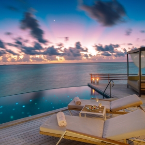 Your own personal retreat perched above Baros seas, these warm timber villas let you escape to tranquility. Our lagoon lies just beyond your canopied daybed, waiting for you to jump in and explore, while a wide timber deck lets you drink in endless ocean views. In the evenings, relax amid spectacular sunsets, and watch as the sky transforms into a lightshow of constellations. Inside, enjoy a private world of elegantly cosy furnishings and plush amenities, with thoughtful touches of indulgence everywhere you look.