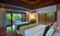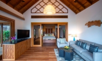 Inside, a separate bedroom and living room give you all the space you need to feel at home, while an expansive bathroom pampers you with luxurious amenities. You've got designer toiletries, an indoor shower, a deep free-standing tub and an outdoor shower with palms overhead and plants at your feet.