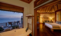 Dotted along the shorefront, dappled in the shade, Deluxe Villas shelter you beneath the natural jungle canopy that defines Baros. Enjoy lazy days on your beachfront deck, or wade into the lagoon and explore our teeming house reef. Retreat inside to a cosy space of rich woods and warm hues, with a king-sized bed that provides the deepest sleep. Out back, you've got a tropical garden and exotic open-air bathroom all of your own, complete with sun loungers, a deep free-standing tub and an outdoor shower, so you can bathe under the heavens, surrounded by tropical trees.
