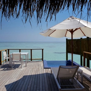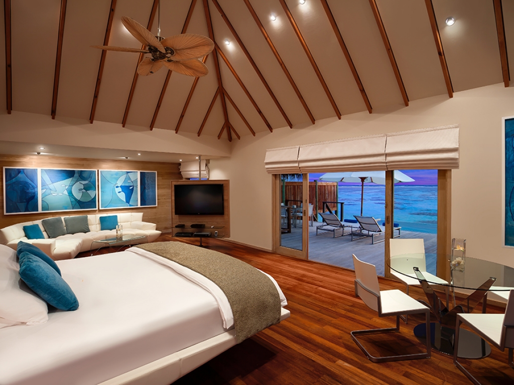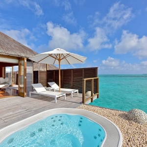 Your superior water villa features a whirlpool on the sundeck and a luxurious king size bed which directly faces the ocean – ready for those extraordinary Maldivian sunsets.