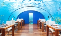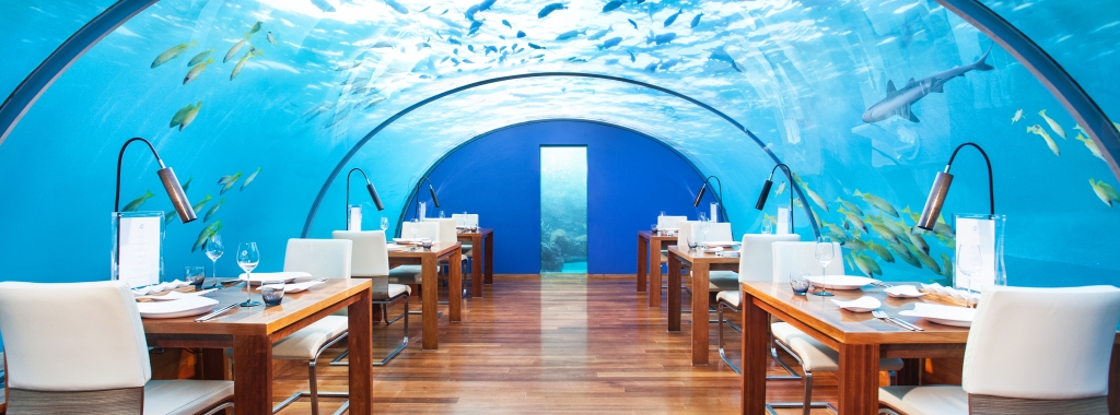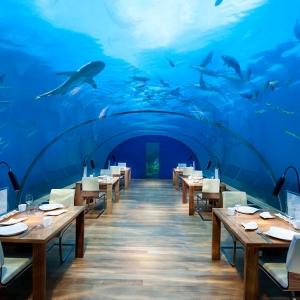 Dine five meters below the surface of the ocean, in the world’s first undersea restaurant, with panoramic coral garden views and fusion menus matched with fine wines. Ithaa can be reserved for private dining, weddings and special occasions.