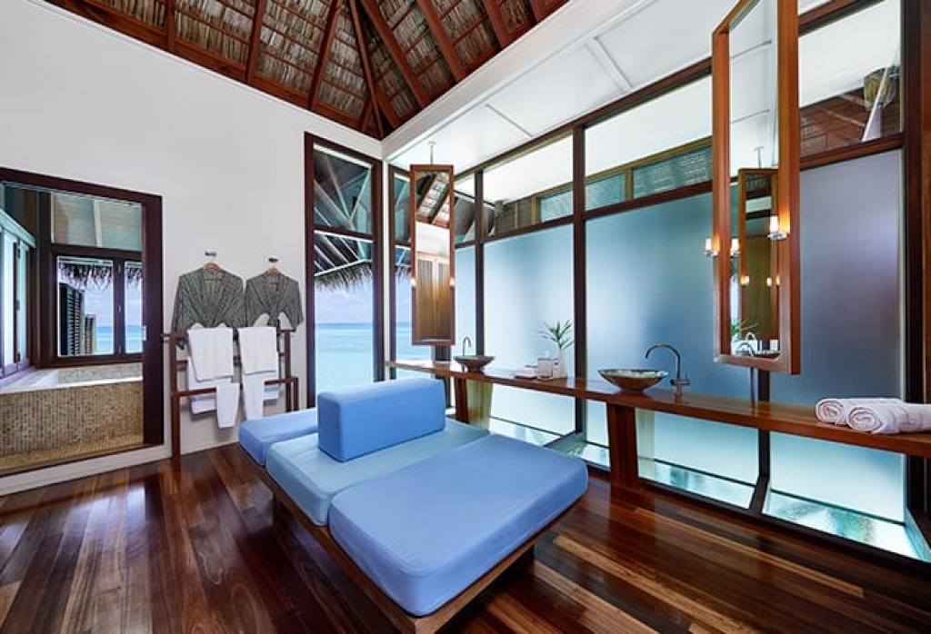 Located 100 meters off the tip of the main island, spa villas come with your own double spa treatment room, whirlpool and steps leading into the Indian Ocean.