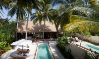 Located 100 meters off the tip of the main island, this spacious villa offers the ultimate seclusion with whirlpool and steps leading into the Indian Ocean.