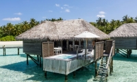 Winner of the “Maldives Leading Water Villa Resort 2016” title, this Rangali Island villa features a private sun terrace – complete with plunge-pool and stairs leading directly into the Indian Ocean and an ocean-facing tub.