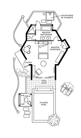 Move effortlessly from indoor seclusion to the white-sand beach, from sunbathing on your private deck to cooling off in your plunge pool. Set amid a garden of tropical foliage and mature palms, our Sunrise Beach Bungalows with Pool offer the best of indoor-outdoor living.