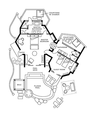 A new secluded sanctuary that’s perfect for couples. Laze in bed and gaze out to your spacious private garden complete with a free-form pool, day-bed and gazebo.