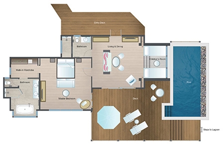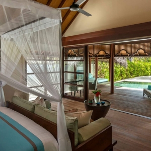Space, privacy and an ocean of possibilities are at your fingertips. Retreat to the far end of the water villas jetty for this one-of-a-kind haven, or lounge in overwater nets by the pool. Savour evening tranquillity with separate sleeping areas before sunrise snorkelling adventures in your own private lagoon.