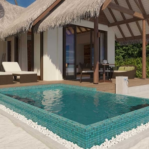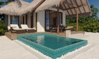 The enchanting Pool Beach Villa is our signature accommodation and comes with a private pool complete with sun loungers. This Maldives pool villa features direct beach access perfect for a refreshing dip in the dazzling waters of the Indian Ocean.