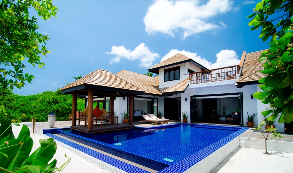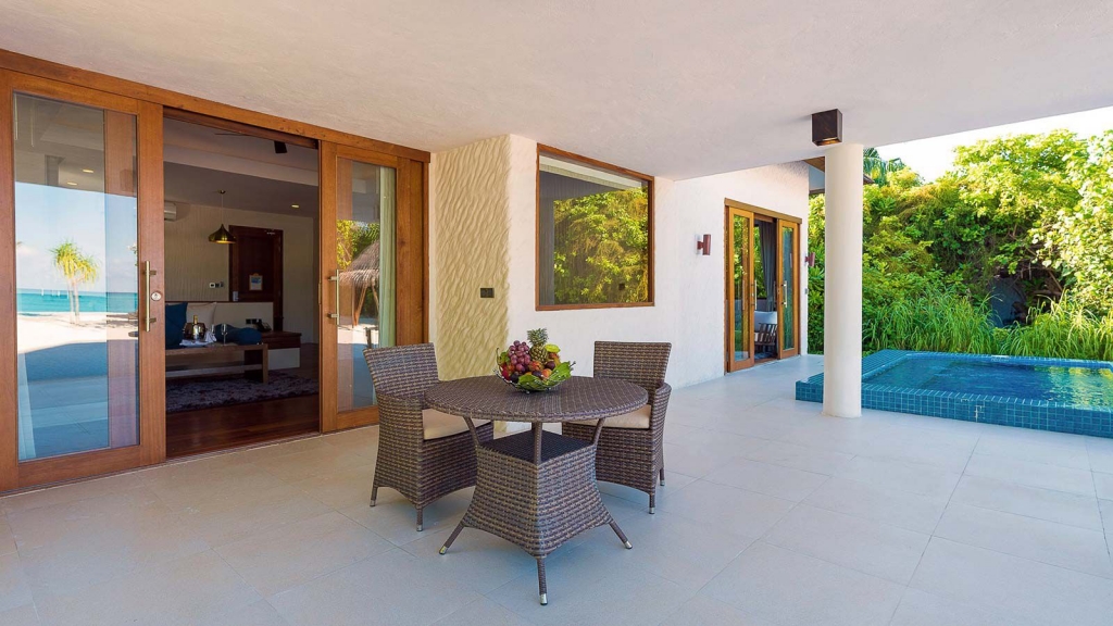 The Deluxe Beach Residence with Pool is a homely beachfront bolt-hole – the perfect luxury villa setting for a romantic escape to the Maldives.