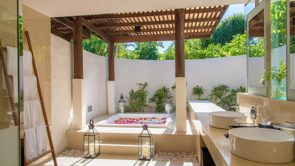 Spellbinding surroundings and heavenly treatments honor the harmony of mind, body and soul at Hideaway Spa. With its design influenced by the breathtaking natural beauty of the Maldives, sand, sun and sea themes echo throughout internal waterways and water walls, open areas and sandy floors. The delicate combination of coconut and teak timber furnishing, sukabumi stone, java rosso tumble stone, sandstone, pink slate, onyx and silk fabrics offer a journey for the senses.