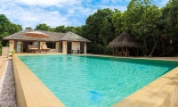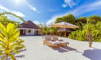 The villa has a separate dining and living area, as well as a very spacious bathroom, complete with a jacuzzi bathtub. Situated between the villa and its private beach is a 40m2 pool.