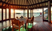 Dinner is a magical affair where diners sit on the open air deck under a sea of stars. For an utterly romantic experience we recommend booking one of the two over-water private dining pavilions.