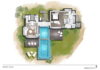 Set amid lush greenery, our 14 Beach Pool Villas offer king bedding, an open-plan bathroom, outdoor shower, a private pool, sundeck and al fresco dining area to relax and unwind as you take in the breathtaking views of the beach, ocean and beyond.