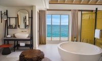 These west-facing villas feature a king bedroom, an open-plan bathroom with separate shower and bathtub, outdoor shower, spacious living area with pantry and powder room, two sundecks and a private infinity pool.