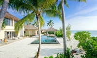 Spread over two floors with beachfront access and surrounded by lush tropical gardens, your beach sanctuary features two bedrooms with one king bed and two twin beds, two ensuite bathrooms, outdoor showers, open-plan living space, dining area, a pantry and powder room, expansive outdoor decks with an infinity pool complete with an open-air living pavilion.