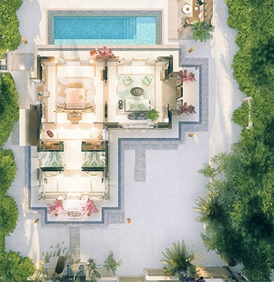 The perfect island home on the water for the entire family. With an airy living room, infinity pool and two bedrooms, it allows you to be together under one roof yet enjoy total privacy.