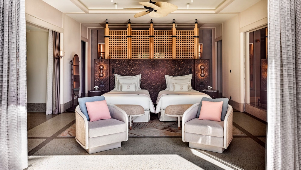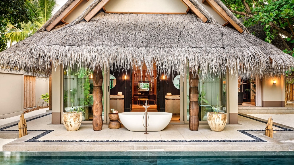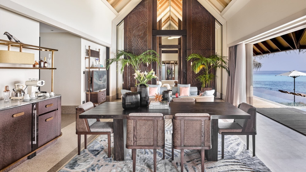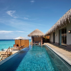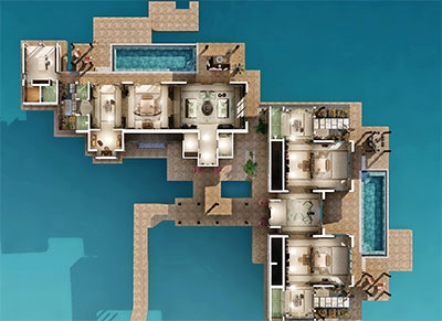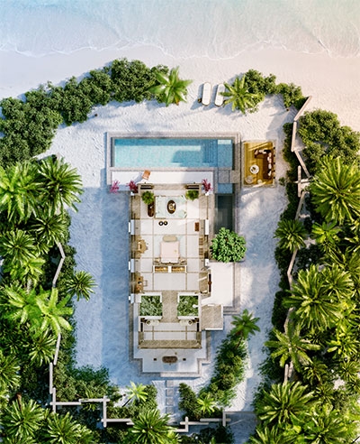 No need to worry about space here. In addition to the three bedrooms, two living rooms and two infinity pools, this 400 sqm area boasts three dressing rooms each with two built-in closets. From terraces perfect for gatherings to romantic balconies; an uninterrupted ocean view renews your joy to be alive. A boat or as well call them a Dhoni will be provided whenever you want to head out to the spa or restaurants.