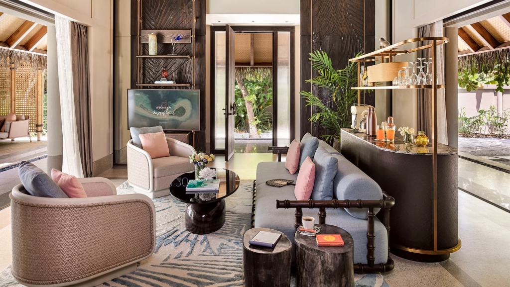 An art immersive luxury island resort, nestled on Muravandhoo Island in Raa Atoll in the northern reaches of the Maldives. Where dreamy ivory sands meet brilliant blue waters, home to coral reefs brimming with life and colour. Raise a toast to sustainable glamour in this magical realm, a constant expression of joie de vivre.