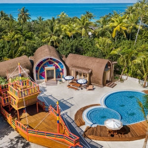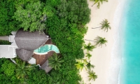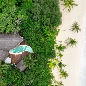 Cozy Beach Pool Villas offering the ultimate in privacy, surrounded by lush tropical vegetation and captivating views of the Maldivian sunrise.
