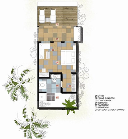 Ideal for families or friends travelling together, the 2-Bedroom Beach Houses have two storeys each featuring separate living spaces, with individual entrances. Both come with expansive bedrooms with king-sized beds, day beds and wooden sundeck, or balcony. Spacious and airy bathrooms are complete with bath, shower, vanity and outdoor rainfall shower.