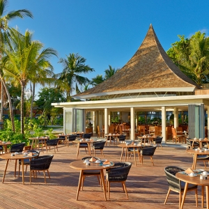 Offering views of the infinity pool, Island Coffee Shop is an all day dining option featuring a diverse International menu and a special selection of local curries.