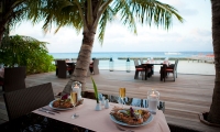 An intimate restaurant, situated over the turquoise lagoon, The Reef is our signature seafood restaurant. It offers guests fresh catch from the Maldivian waters and quality seafood imported from abroad. Your choice of dinner is prepared just the way you like it.