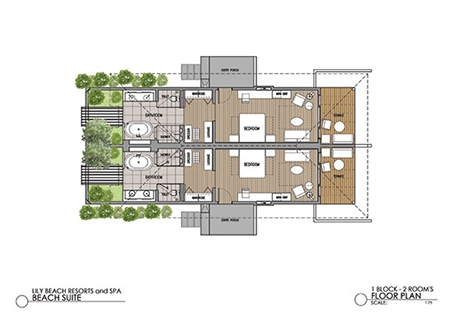 These suites are suitable for both couples and families. To comfortable accommodate families into the Beach Suites, those are interconnected: one room will contain a king sized bed, and the other will offer twin beds.