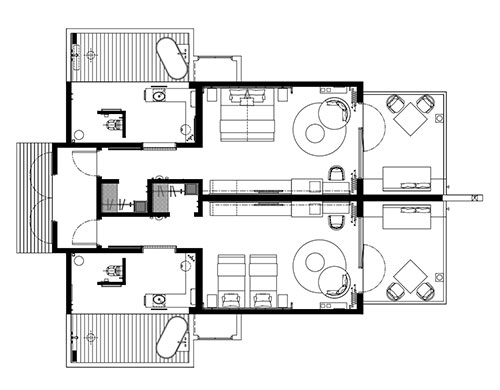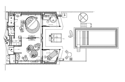 Light sand and ochre tones reflect the beautiful island setting beyond the terrace, while subtle décor echoes the ebb and flow of the ocean. All guestrooms enjoy en suite outdoor bathtub where the open sky, bright hibiscus and beautiful banana trees provide privacy in a natural setting.