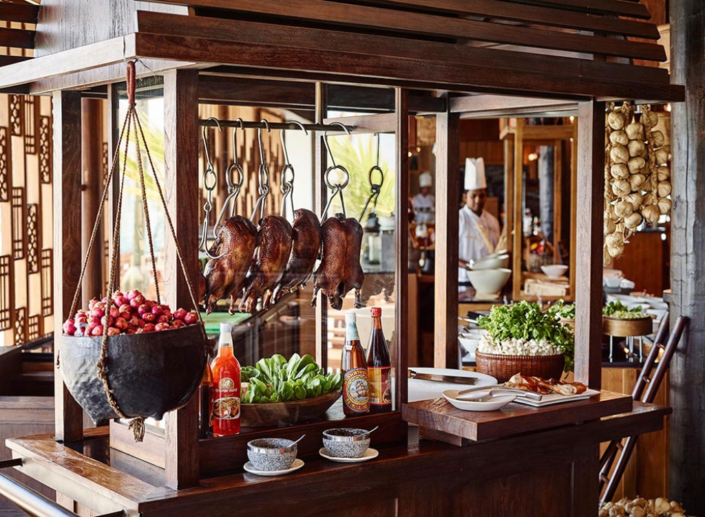 The interactive stalls in our over-the-water Asian-market-inspired restaurant make it as fun to admire the action as it is to try authentic tastes from Thailand, China, Taiwan, Vietnam and the Philippines. Dim sum steam in bamboo mushiki. A parade of meats, vegetables and seasonings urges you to have noodle dishes or stir-fries whipped up in woks. A pushcart displays a perfect Peking duck. At East Market breakfast and dinner isn’t just about grazing from the live cooking stations – our terraces promise heart-stopping Indian Ocean views. In the mood for a classic European start to your day? Follow the scent of baking to croissants, baguettes, pastries and seeded loaves, fresh from that glass-fronted oven. Rustic baskets spill over with fruit and vegetables, next to sacks of intriguing spices, while skilled chefs stand by to make your culinary cravings come alive in front of you.