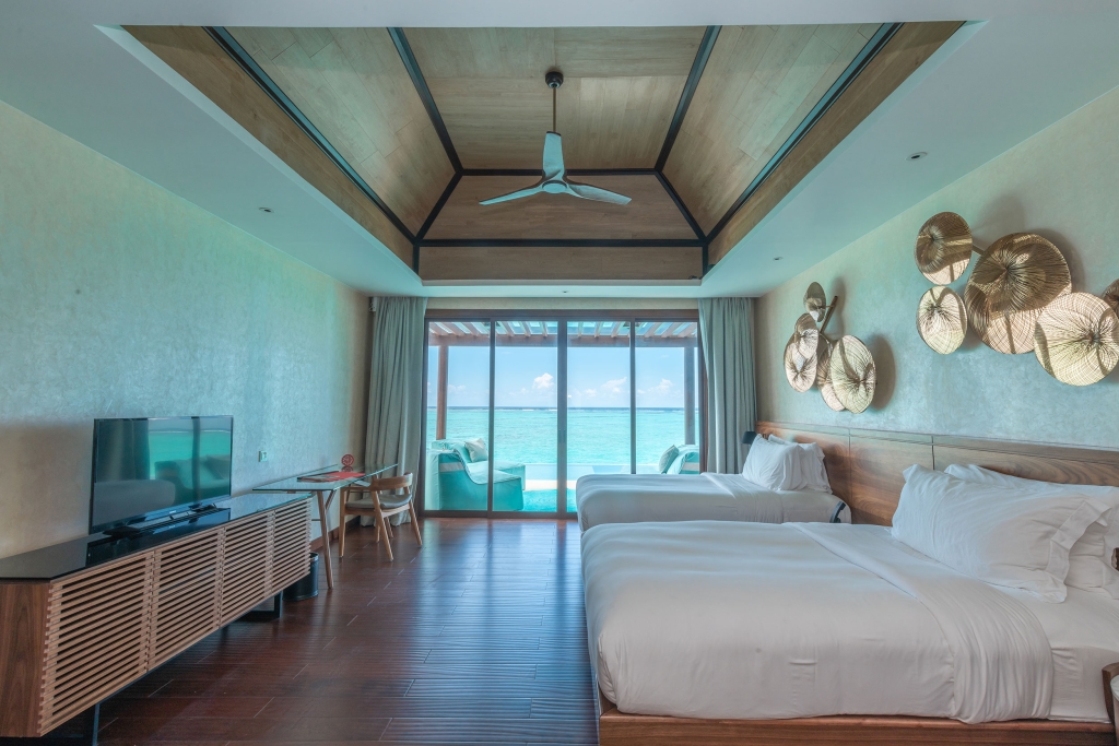 Live the life of ultimate Maldivian leisure. Drift away embraced by a floating cocoon. Let your eyes skim the water. The cool blue of the infinity pool bleeds to the azure of the ocean. A soft ‘clink’ of champagne glasses strikes a high harmony in the symphony of ocean waves and tropical birds.