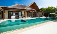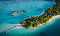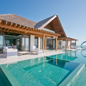 Huddled together offshore, a quintet of extraordinary villas forms a secluded overwater playground. Close to the action but far from the bustle, up to 14 adults and eight children can experience a holiday fantasyland amidst azure skies, turquoise sea. Here, the island comes alive for you. Grills sizzle at your private barbeque and movie under the stars. Boduberu drums beat.