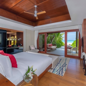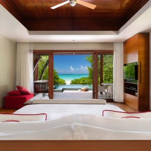 Juxtaposed with virgin surrounds your pool villa is Maldivian chic and timelessly modern, with bold splashes of colour, high tech entertainment and sultry surround sound. Indulge with a fridge full of treats and your butler at your beck and call.