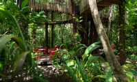 Explore the surreal six metres high or tucked between serpentine vines at the forest floor. For a theatrical meal, the teppanyaki table is the most desired in the house.