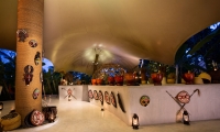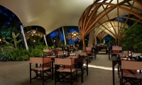 Welcome to the fireside, with a jungle canopy overhead and torches lighting the way. Here, the flavours of Africa, Central and South America are explored in the open kitchen.