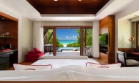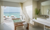 A private expanse for chilling and playing, the beach suite includes a living room by day that turns into king-sized comfort for two children. Unwind with al fresco bathing, with a soaking tub and the choice of indoor and outdoor rain showers cocooned by virgin palm fronds. In the evening, snuggle up with freshly popped popcorn and watch a movie in surround sound. The whole family can dig in to the Deli-In for licks of homemade ice cream, sweet treats and savoury snacks.