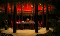Climb into our tree house, Nest, for an unforgettable dining high. Navigate the jungle on a labyrinth of wooden walkways to your private perch in the tree tops. Chilled sculptures of sashimi arrive in a globe of ice. Avant-garde presentations by Thai, Chinese, Japanese and Indonesian chefs grace your table in one of the most spectacular restaurants in the Maldives.