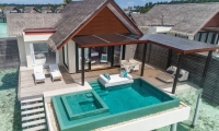 An over-water ocean haven with plenty of space to play. Wake to glimmers of dappled light on the lagoon and descend into its cool waters. Lounge on the deck. Plunge into your private pool by day and slip into your starlit Jacuzzi when night falls.