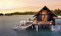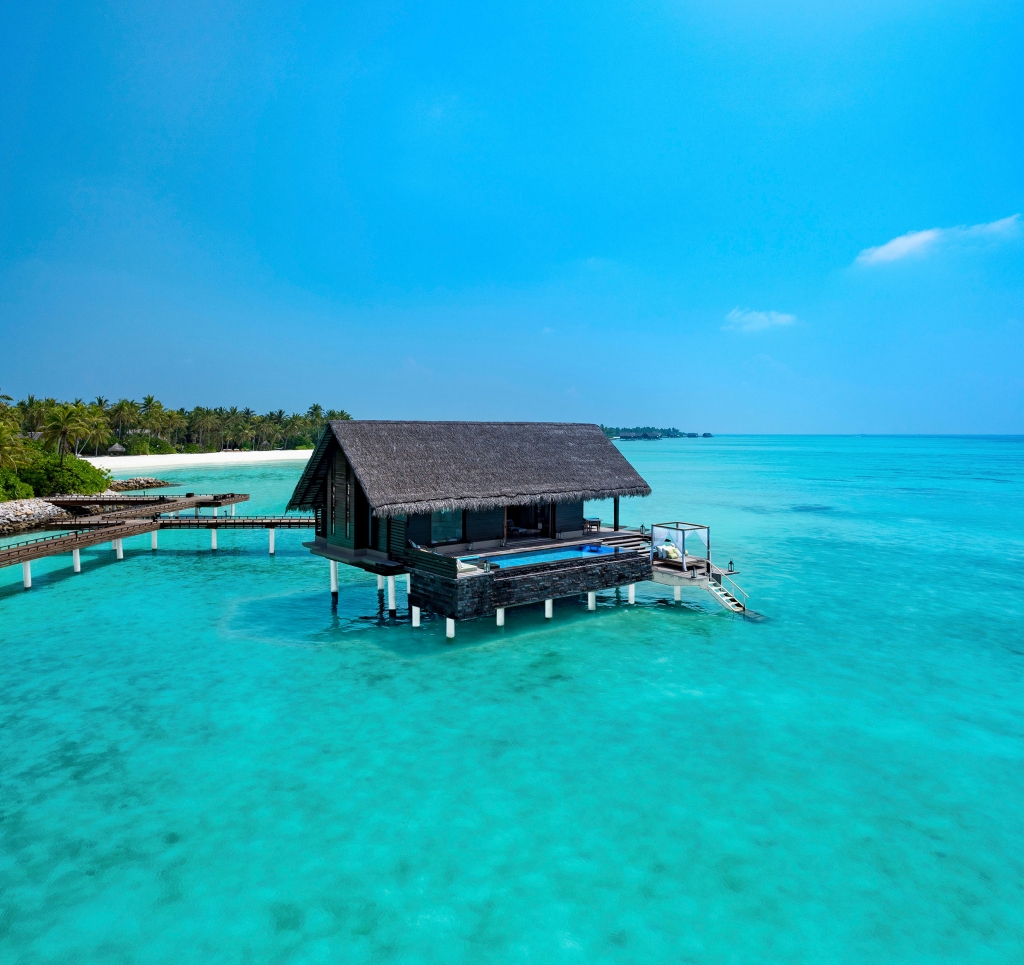 Two majestic Grand Water Villas, an experience unto itself, featuring an impressive infinity pool, private cabana, and over-water terrace for the ultimate Maldives holiday.